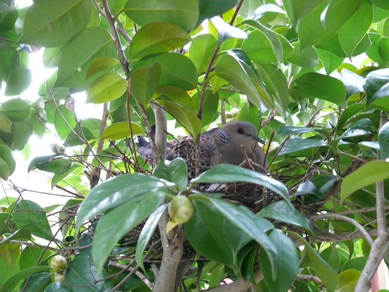 「鳩が巣を作る家には幸せが来るそうですよ」