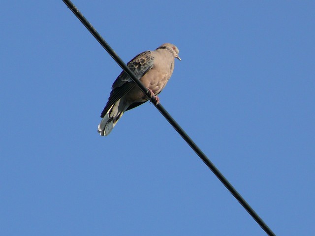 電線の上で、ゆったり、まったりしていました。隣でカラスがガアガアわめいているのに。