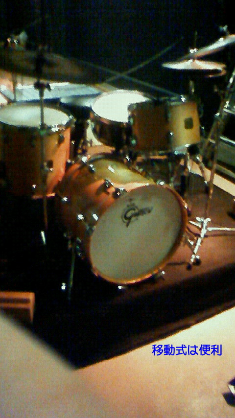 さてさて、ドラムの下に移動式の雛壇を設置してもらいました。これは便利です。