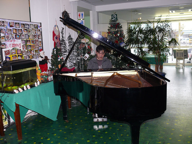 久しぶりに演奏したロビーは、思ったよりもデッドで、ドラムを演奏してるとピアノの音があまり聞こえません。