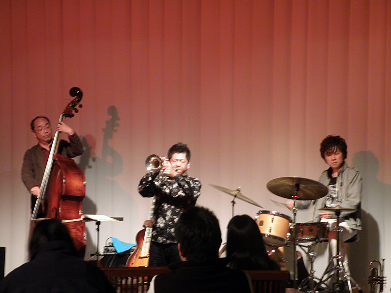 ピアノの佐川君は、かなりお疲れモードで到着。でも、演奏が始まってしまえば、いつも通りのswingyなプレイ。私も含めてそうですが、疲れているとかは関係なかったりするときもあるわけで、演奏してると元気に戻る??なんてこともあります。